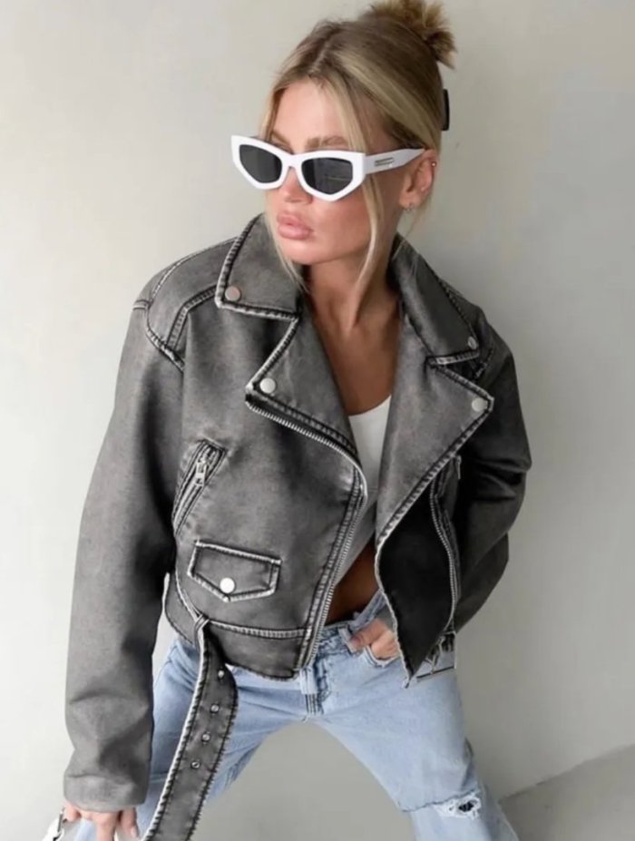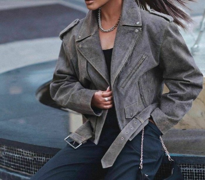 Фото: Образы с серой косухой оверсайз