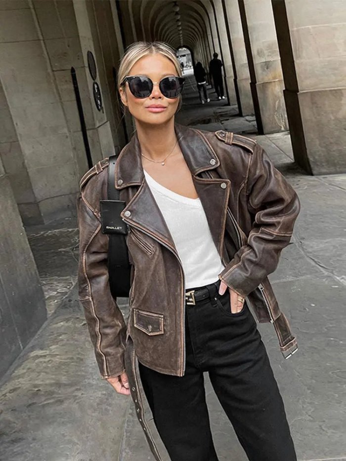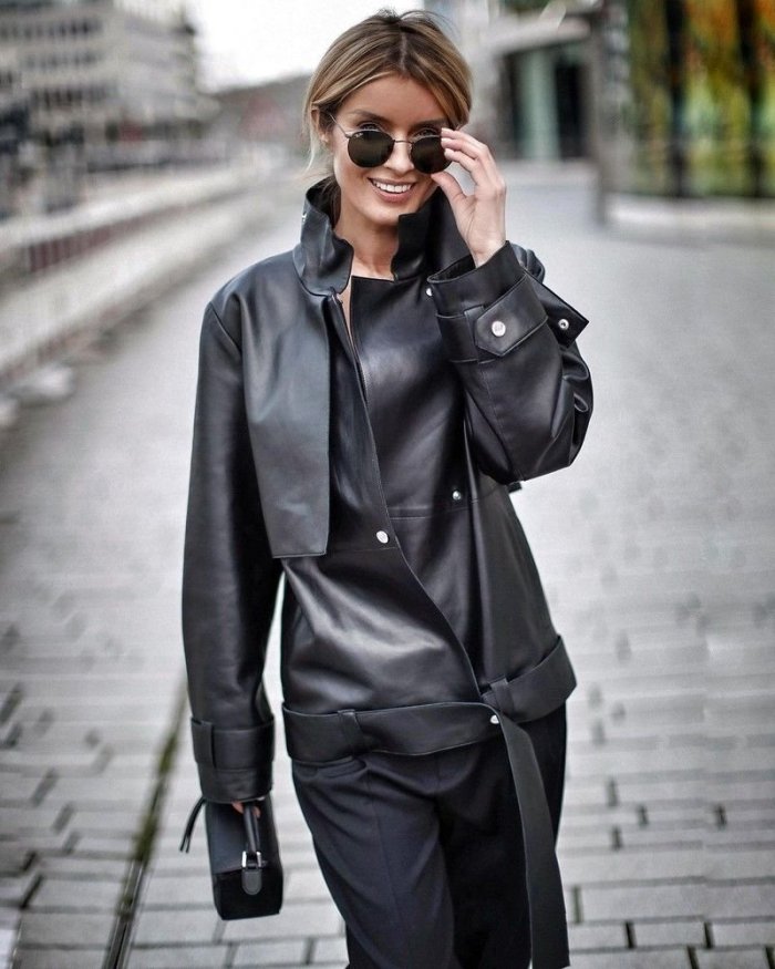 Кожаный пиджак женский оверсайз