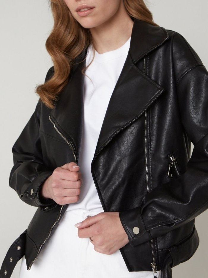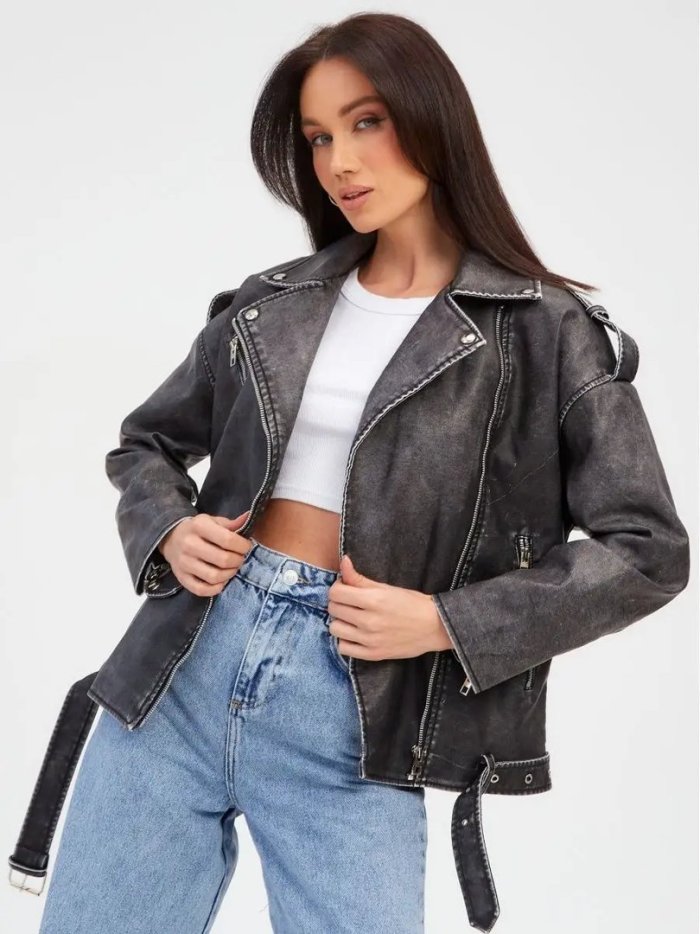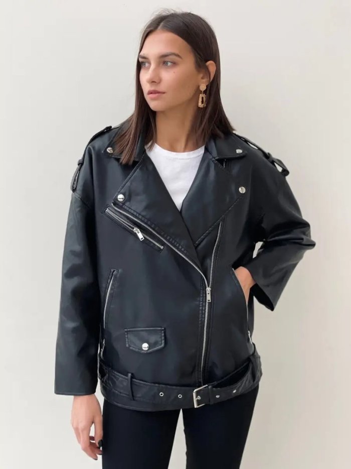 Кожаная косуха оверсайз