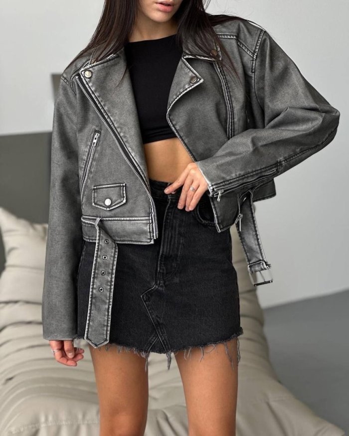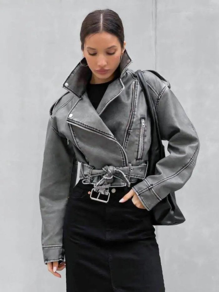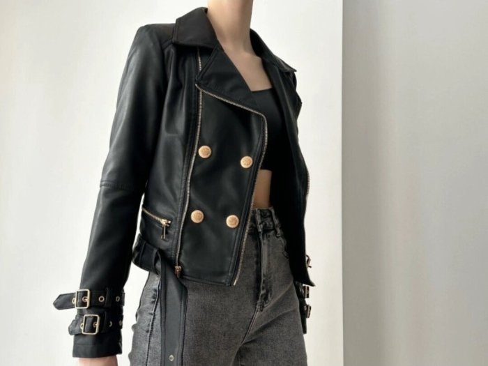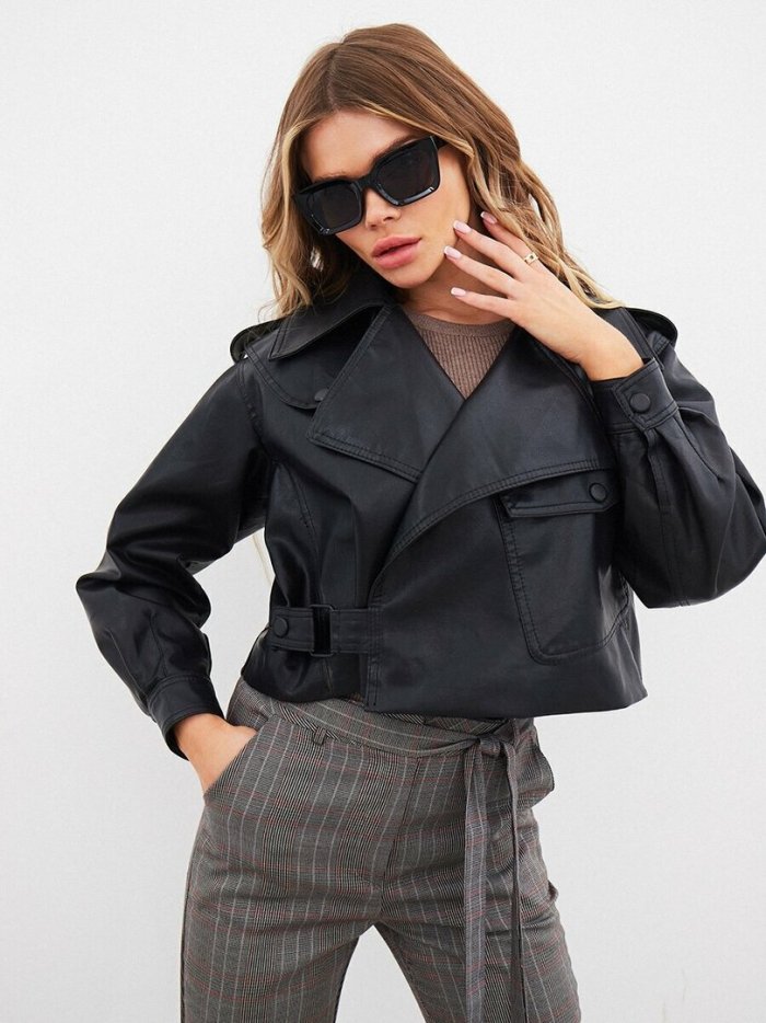 Укороченная кожаная куртка