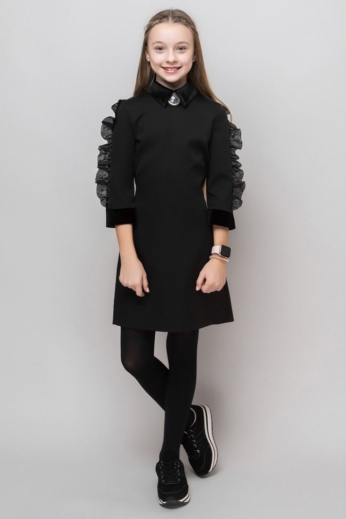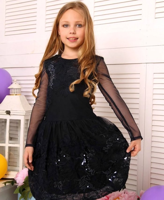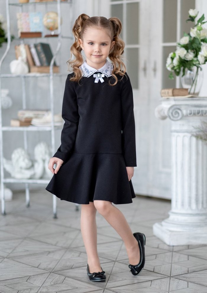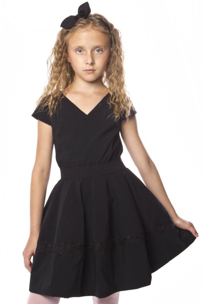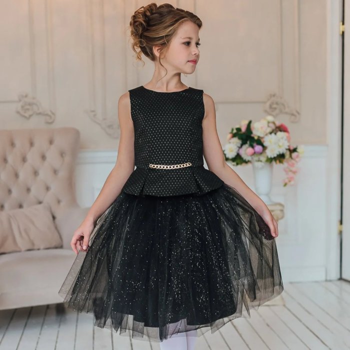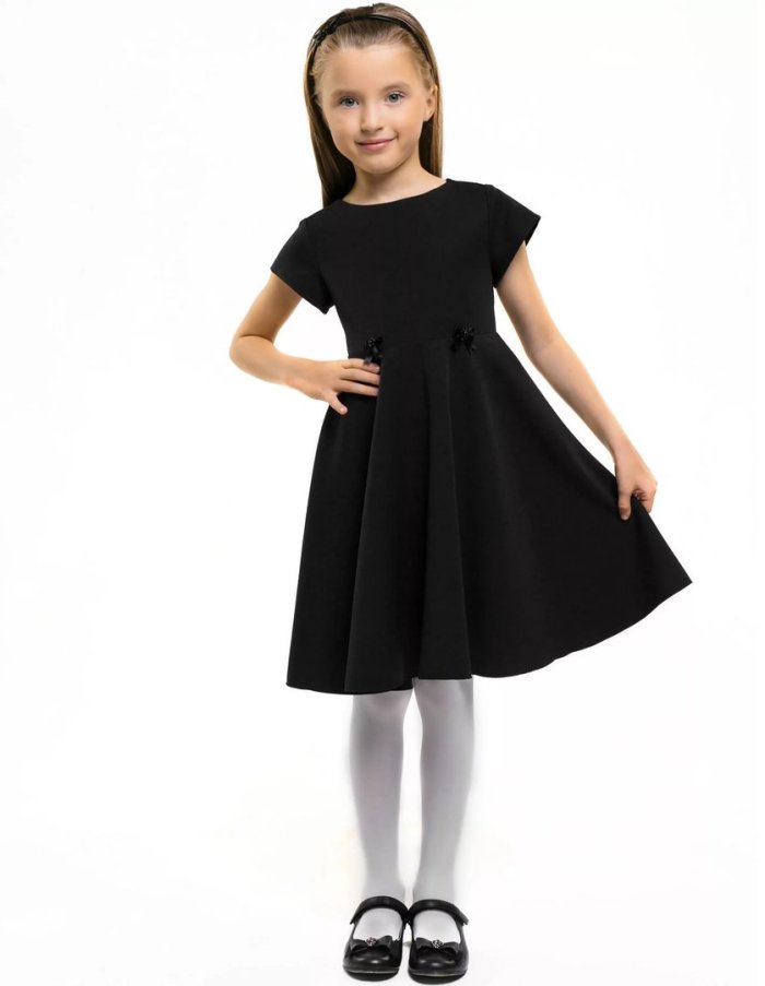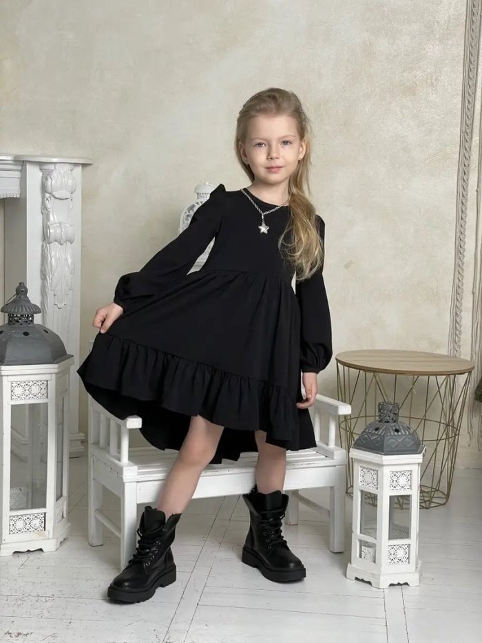 Это элегантное черное платье станет удачным выбором для маленькой модницы. Оно изготовлено из качественного материала, который приятен на ощупь и не вызывает раздражения на коже. Платье имеет приталенный крой, подчеркивающий стройность фигуры. Красивые декоративные элементы, такие как атласный бантик или блестящая пуговица, добавляют особый шарм этой модели. В этом платье девочка будет выглядеть очень стильно и привлекательно. Оно подходит для различных торжественных мероприятий, вечеринок или просто для повседневного использования. Добавьте своего уникального штриха с помощью аксессуаров или пары ярких туфель, и ваша маленькая модница готова к зависти всех окружающих!