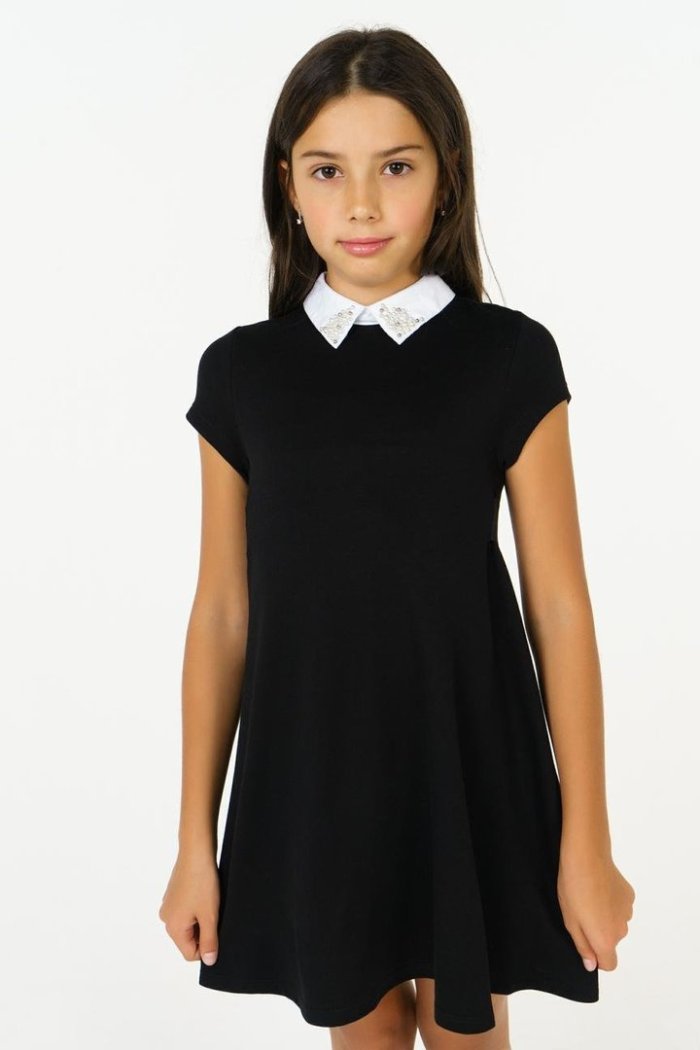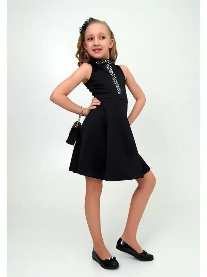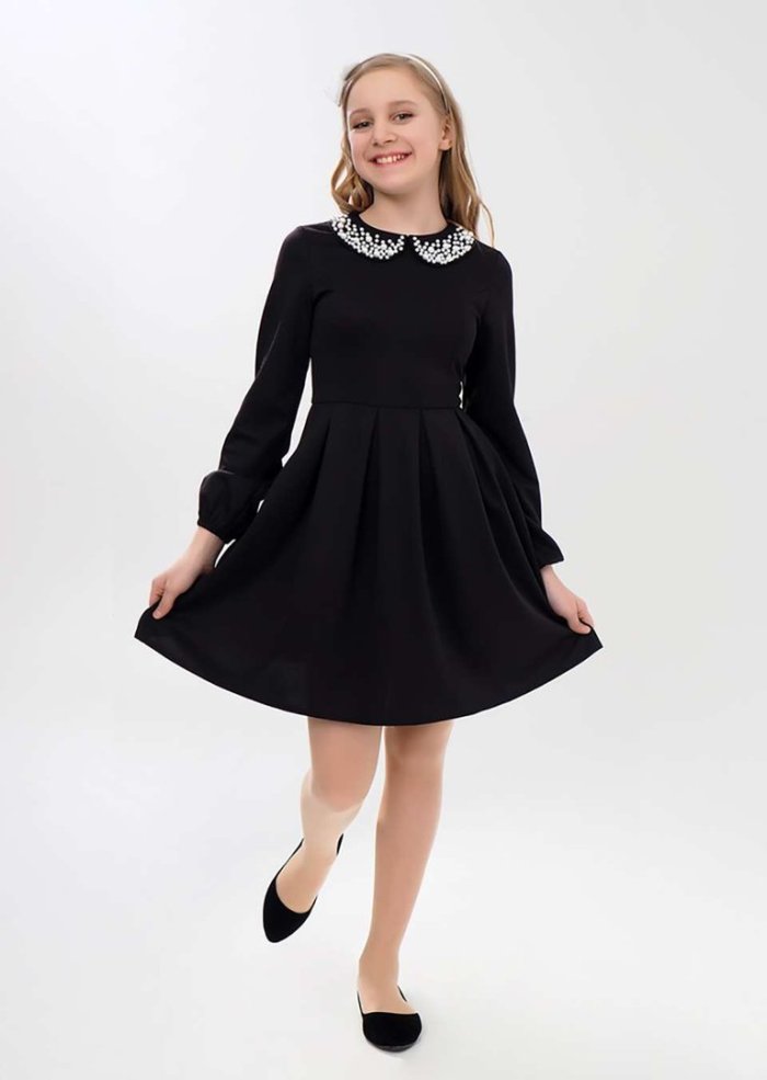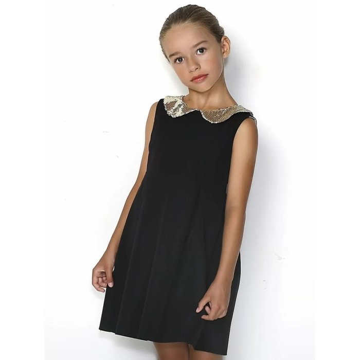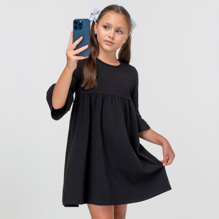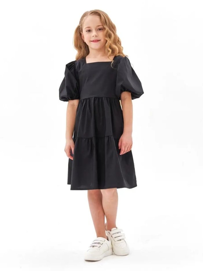 Это элегантное черное платье станет удачным выбором для маленькой модницы. Оно изготовлено из качественного материала, который приятен на ощупь и не вызывает раздражения на коже. Платье имеет приталенный крой, подчеркивающий стройность фигуры. Красивые декоративные элементы, такие как атласный бантик или блестящая пуговица, добавляют особый шарм этой модели. В этом платье девочка будет выглядеть очень стильно и привлекательно. Оно подходит для различных торжественных мероприятий, вечеринок или просто для повседневного использования. Добавьте своего уникального штриха с помощью аксессуаров или пары ярких туфель, и ваша маленькая модница готова к зависти всех окружающих!