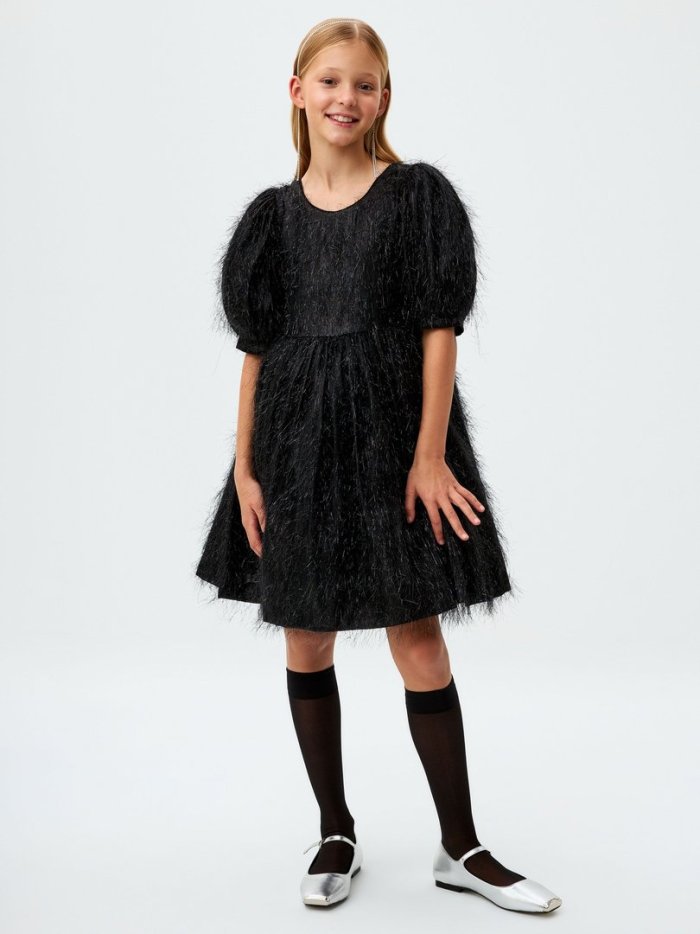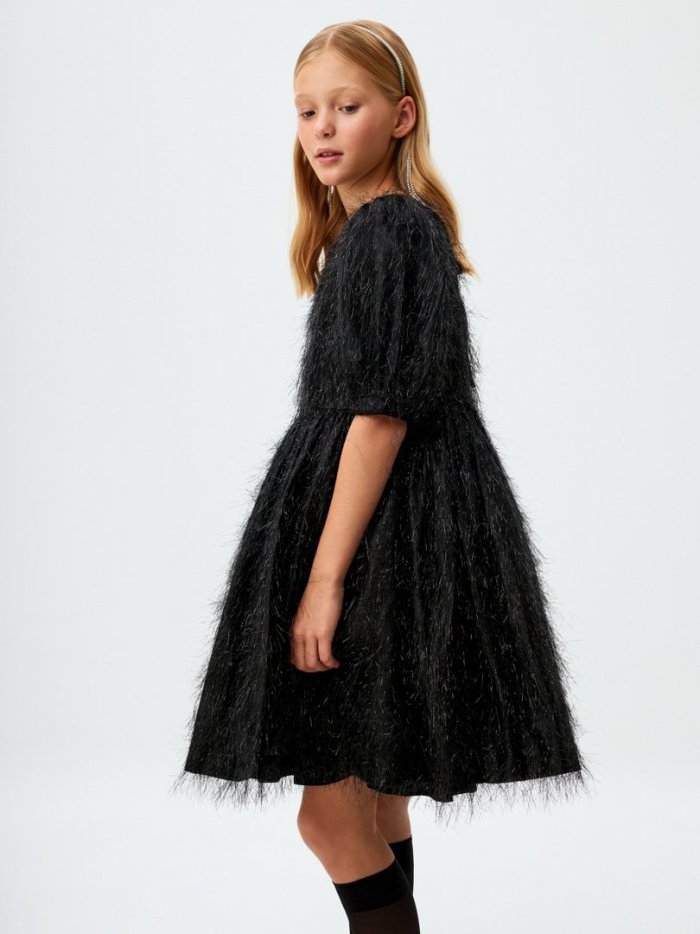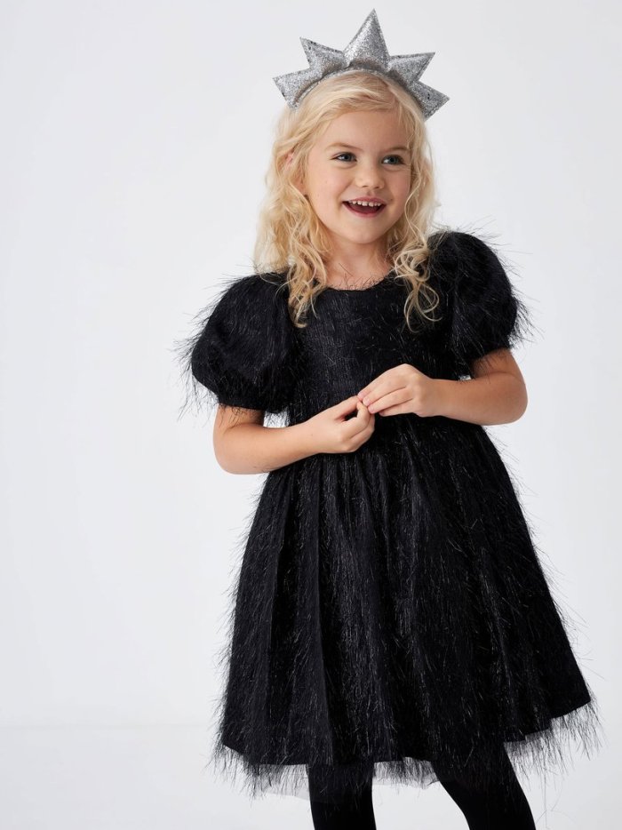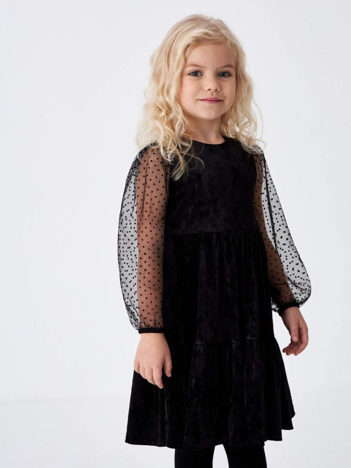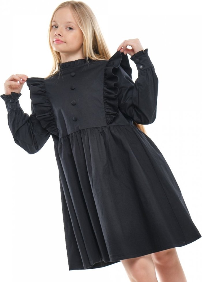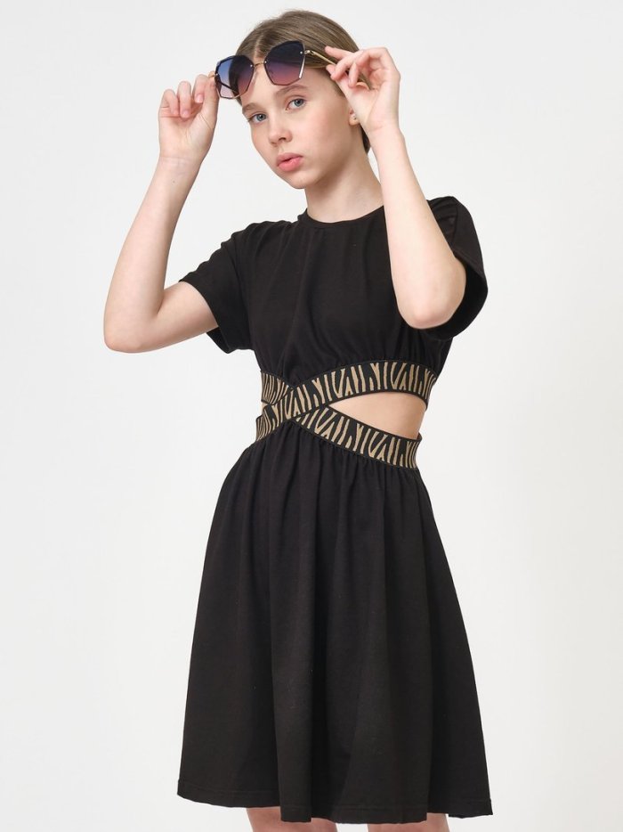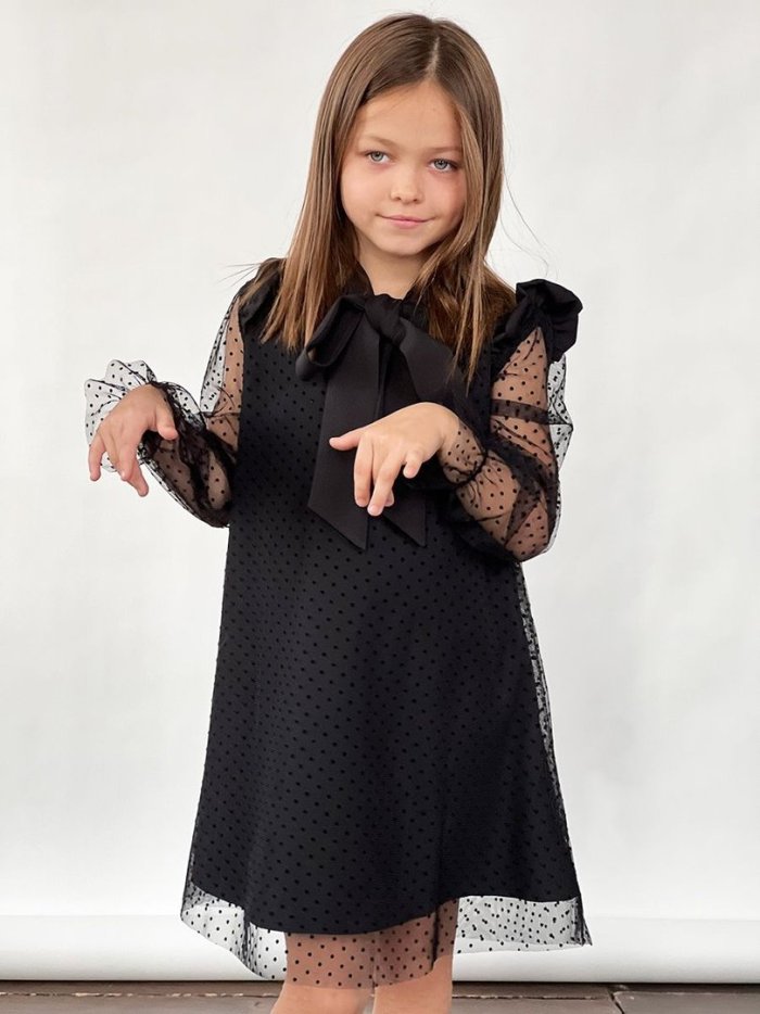 Это элегантное черное платье станет удачным выбором для маленькой модницы. Оно изготовлено из качественного материала, который приятен на ощупь и не вызывает раздражения на коже. Платье имеет приталенный крой, подчеркивающий стройность фигуры. Красивые декоративные элементы, такие как атласный бантик или блестящая пуговица, добавляют особый шарм этой модели. В этом платье девочка будет выглядеть очень стильно и привлекательно. Оно подходит для различных торжественных мероприятий, вечеринок или просто для повседневного использования. Добавьте своего уникального штриха с помощью аксессуаров или пары ярких туфель, и ваша маленькая модница готова к зависти всех окружающих!