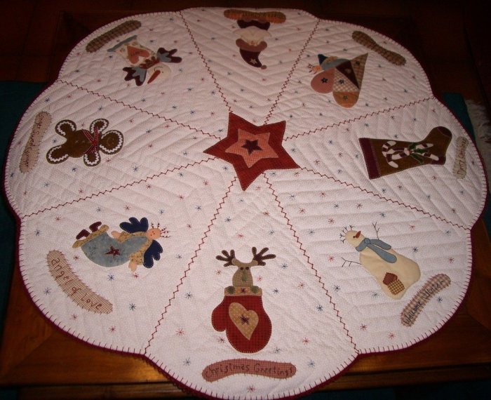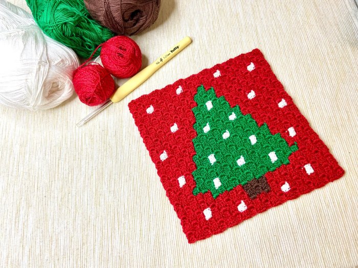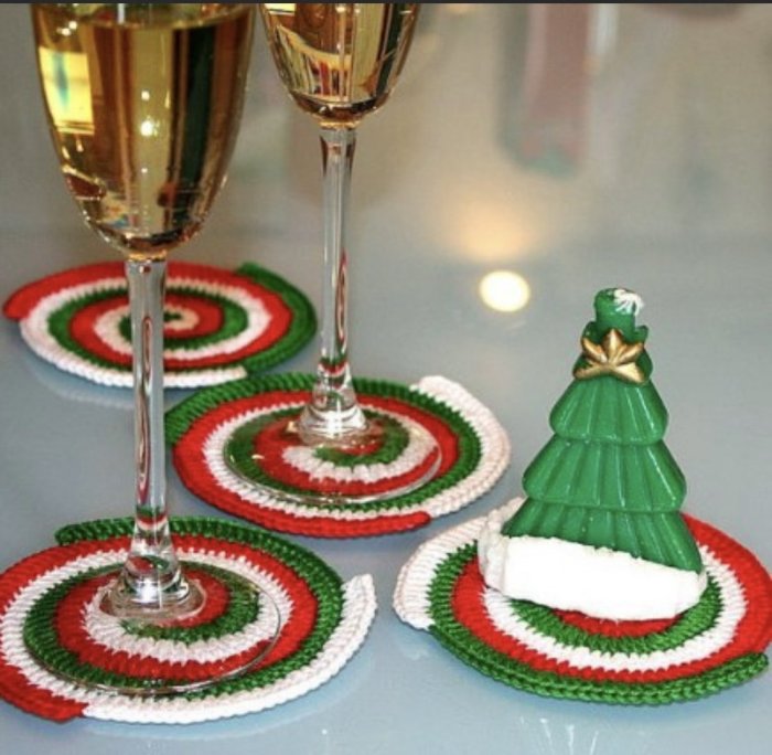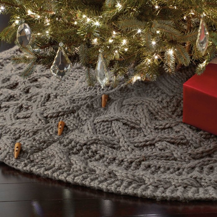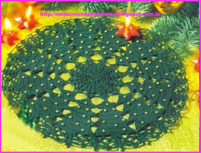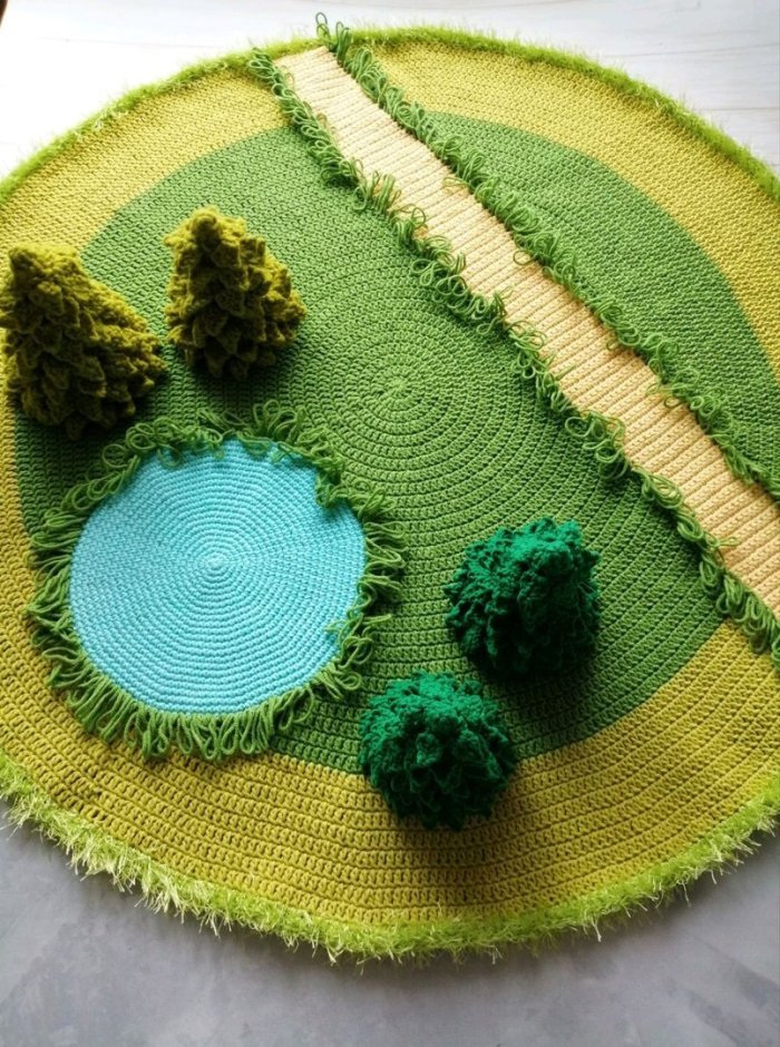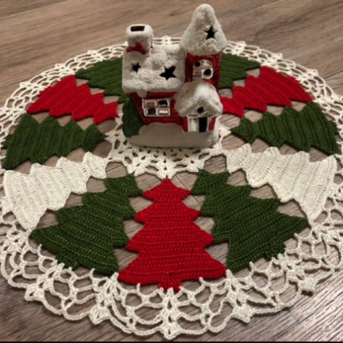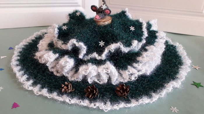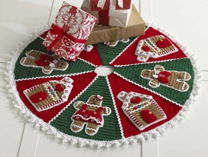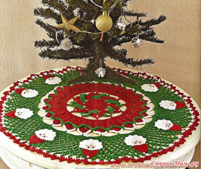 Вязаный коврик под елку
