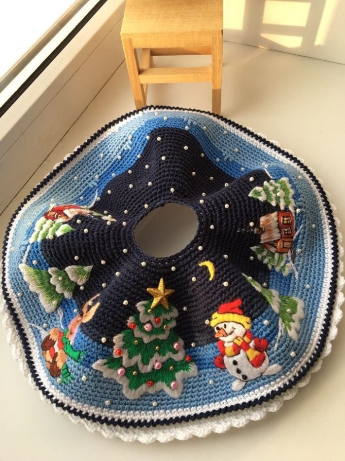 ALmode.top » Мода » Вязаный коврик под елку