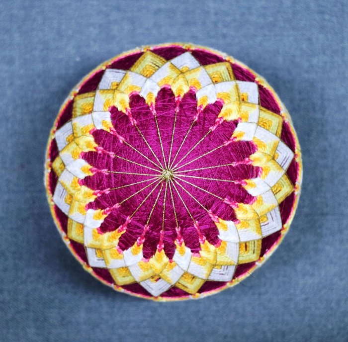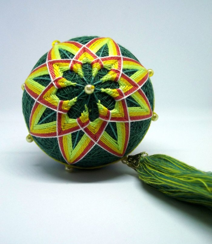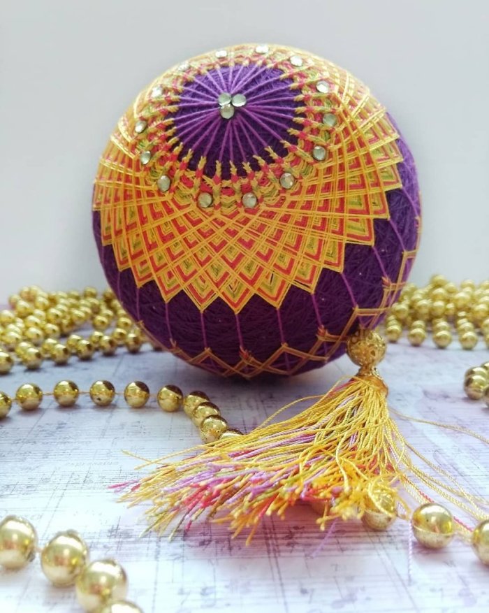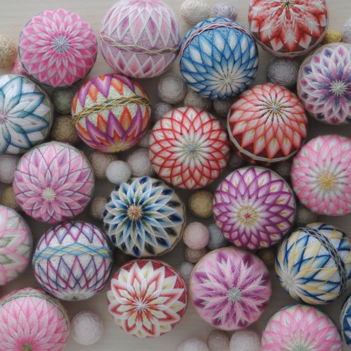 Темари дзуси - это японское искусство создания красивых и уникальных шаров из разноцветных тканей. Эти шары могут быть использованы как украшения для интерьера, игрушки или подарки. Техника изготовления Темари дзуси требует навыков и терпения, так как каждый шар создается путем аккуратной обмотки нитей вокруг центрального ядра. При этом используются различные цвета и узоры, что придает шарам особую привлекательность и оригинальность. В результате получаются настоящие произведения искусства, которые могут стать ярким украшением любого помещения.
