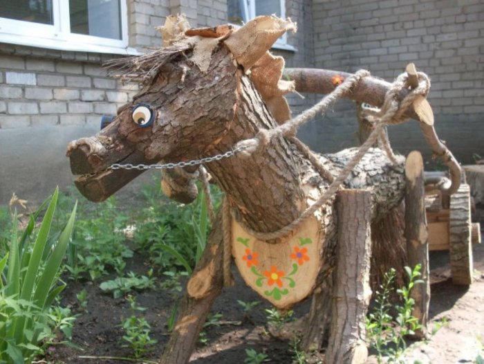 Лошадка из дерева для сада