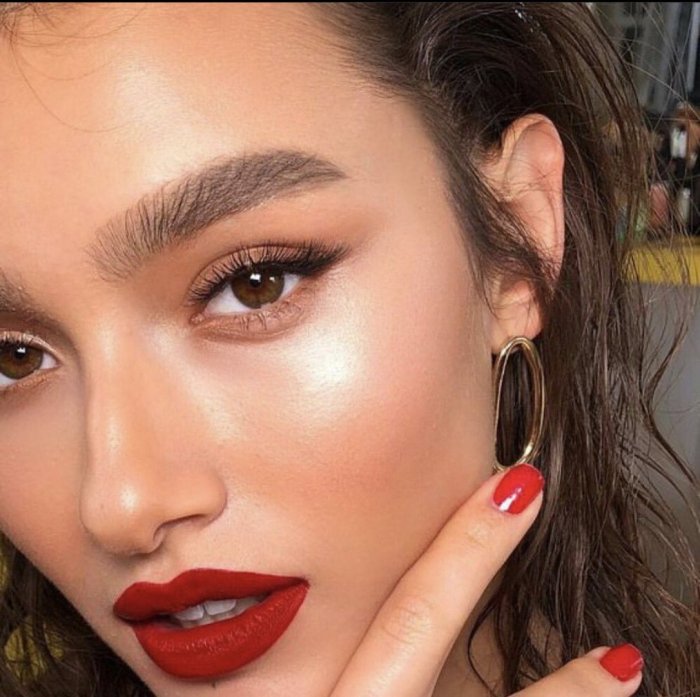 Фото:   Макияж с красной помадой для брюнеток с карими глазами