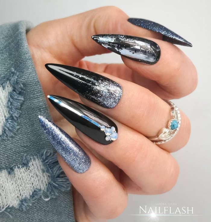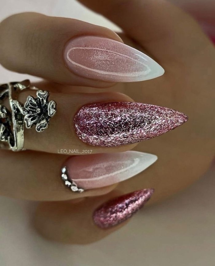 Акцентные элементы – это отличный способ добавить изюминку в ваш маникюр. Используйте стразы, глиттер, фольгу, наклейки или слайдеры, чтобы подчеркнуть свою индивидуальность и создать неповторимый образ.