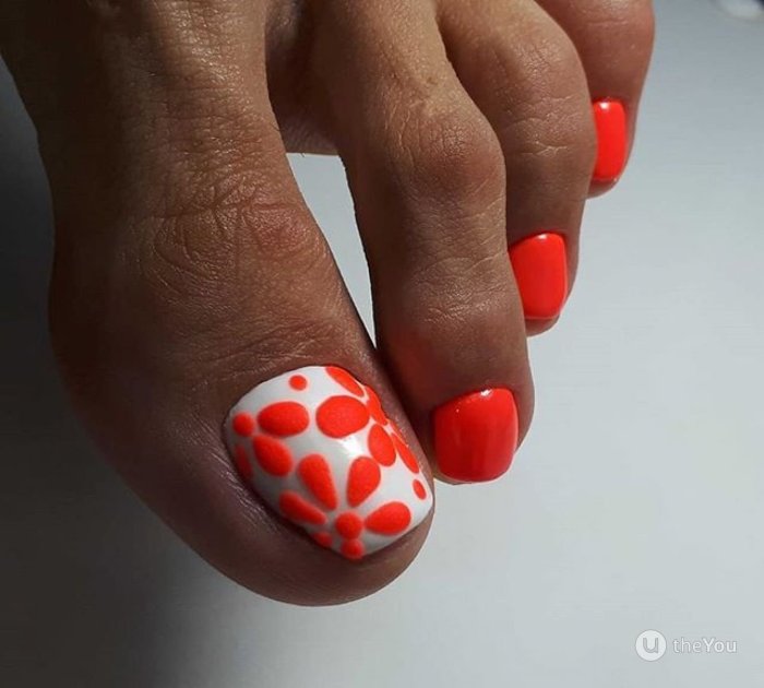 Оранжевый педикюр