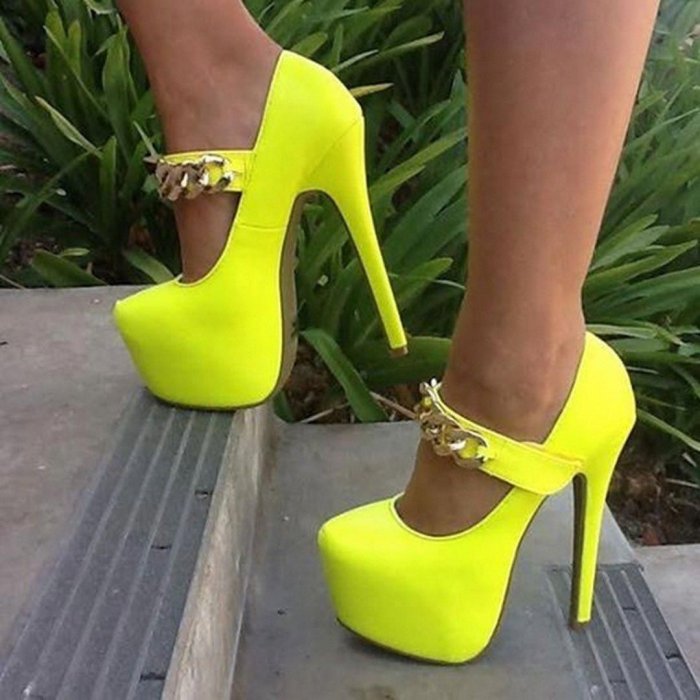 Красивые желтые туфли на шпильке
