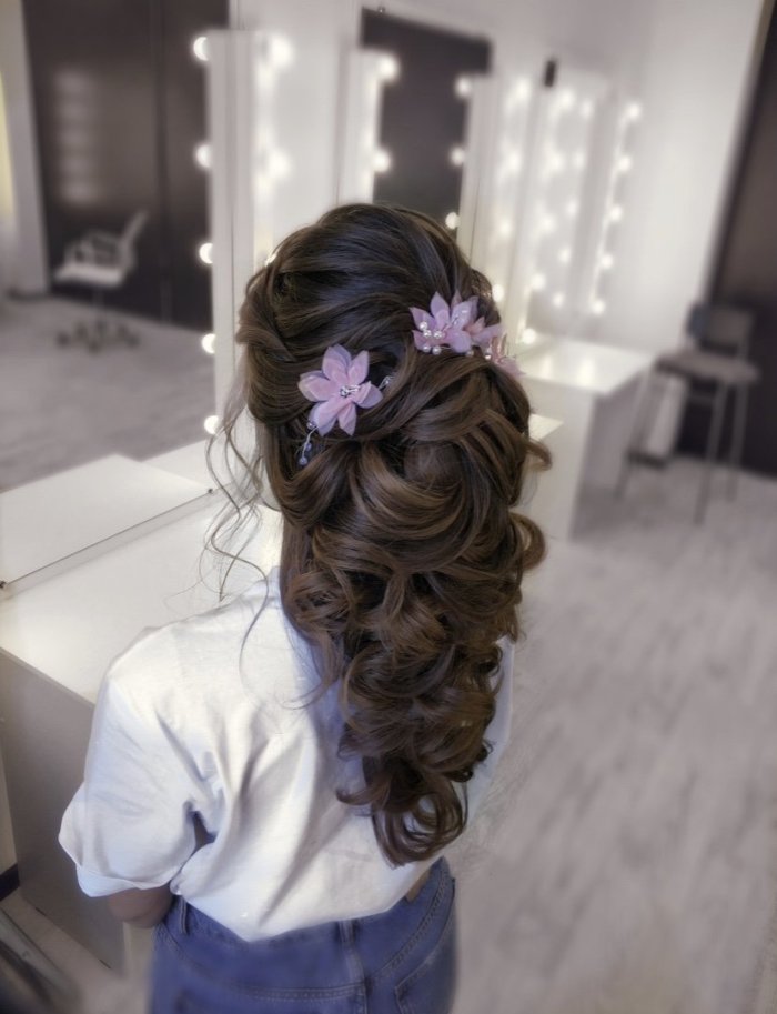 - Цветы: Живые или искусственные цветы украсят любую прическу.