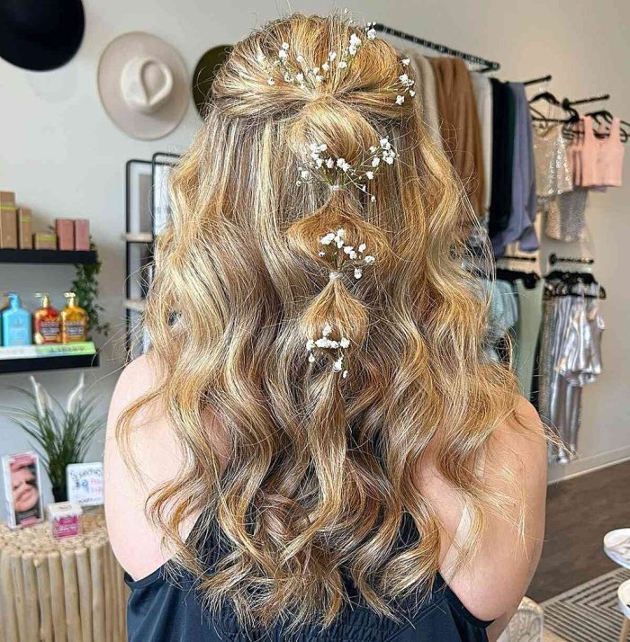 - Прически с цветами: Живые или искусственные цветы украсят любую прическу и добавят образу свежести и оригинальности.