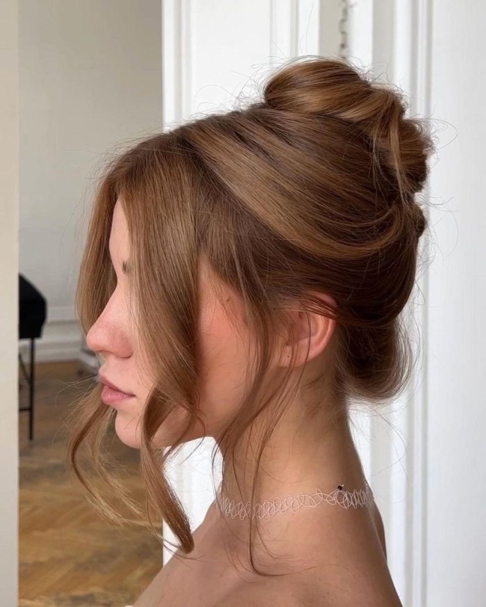 - Текстурные пучки: Выглядят стильно и современно. Можно сделать как высокий, так и низкий пучок, добавив немного небрежности.