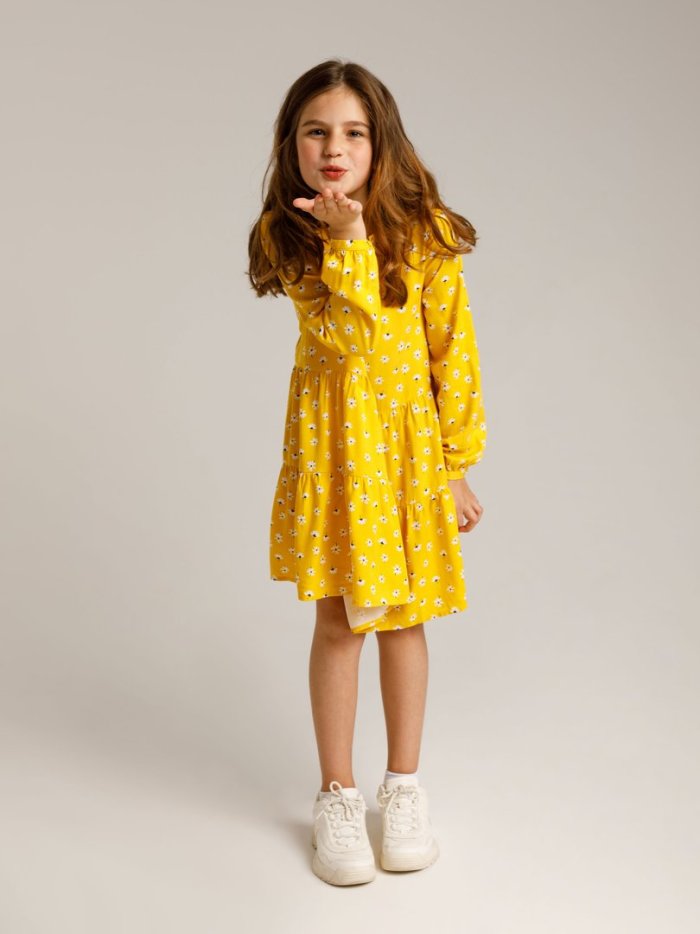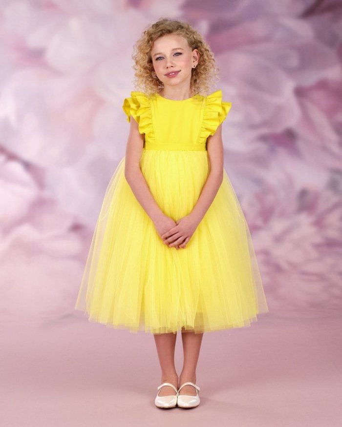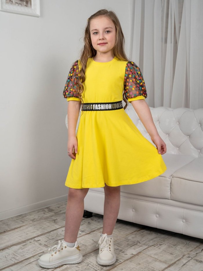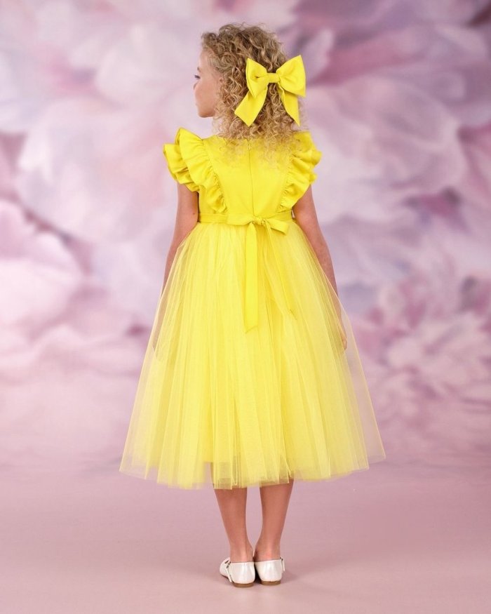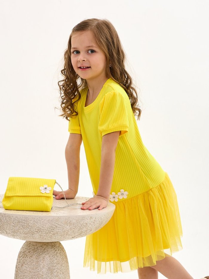 Это яркое и солнечное желтое платье идеально подойдет для маленькой девочки, которая любит радоваться жизни. Оно выполнено из легкой и приятной на ощупь ткани, которая обеспечивает комфорт и свободу движений. Платье имеет уникальный дизайн с гармоничными линиями и элегантными деталями, которые подчеркнут нежность и индивидуальность вашей малышки. Благодаря своему сочному оттенку, оно привлечет всеобщее внимание и создаст позитивное настроение. Независимо от сезона или повода, это платье станет отличным выбором для любого торжественного или повседневного мероприятия. В нем ваша девочка будет выглядеть очаровательно и ярко, словно настоящий солнечный лучик.