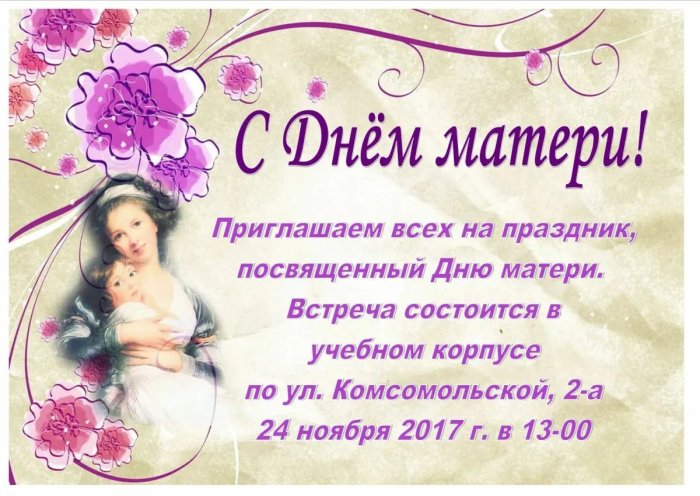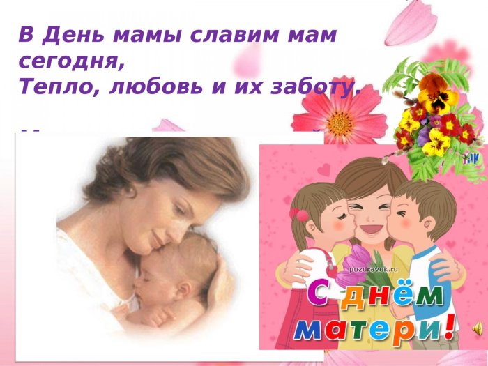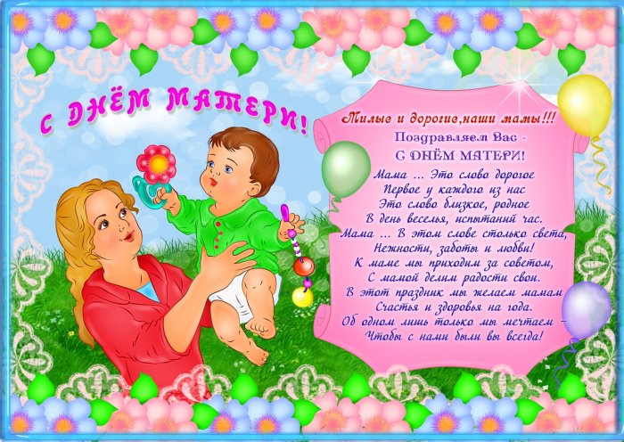 Огромный выбор фото праздничных мероприятий и подготовки к ним смотрите здесь, например «Картинки ко Дню матери для презентации». Смотрите также коллекции «Детские рисунки ко Дню матери» или «Красивая надпись с днем матери в сердечке». Вы можете выбрать для себя идею праздничного декора, подготовки к церемонии, выбрать наряд или украшения, подобрать праздничную обувь и образ в целом. Лучшие варианты тортов, капкейков, интерьера и все для создания праздничного настроения для Вас!
