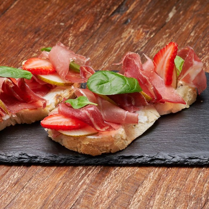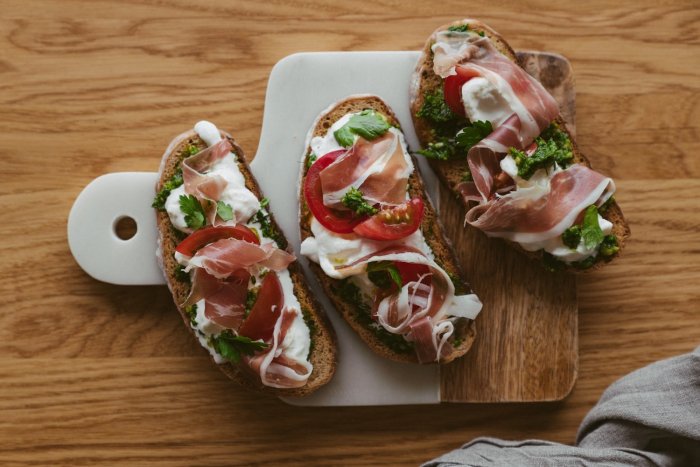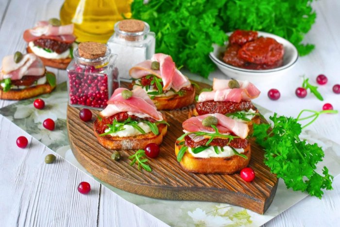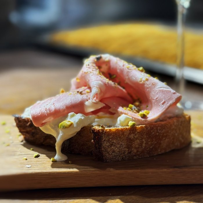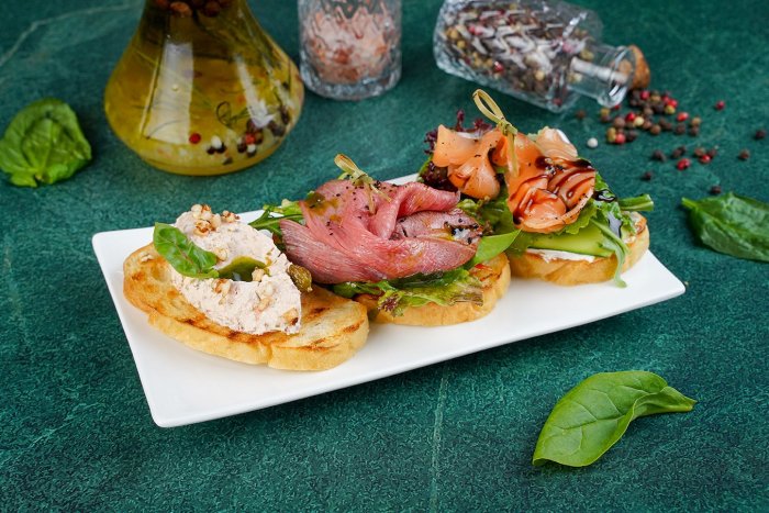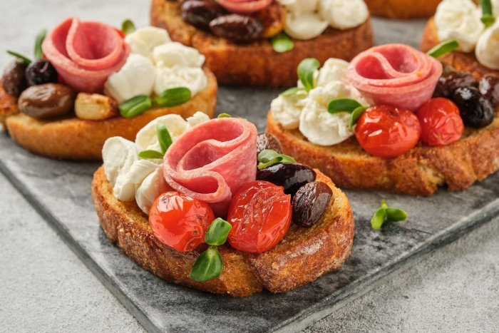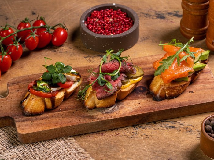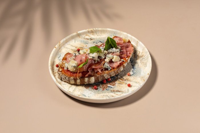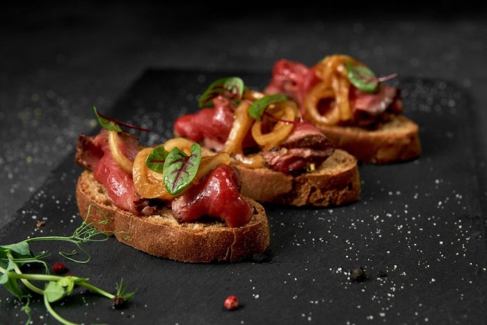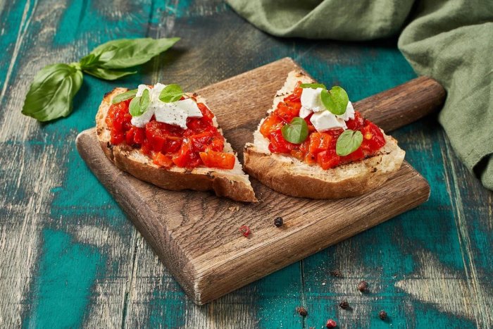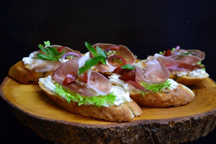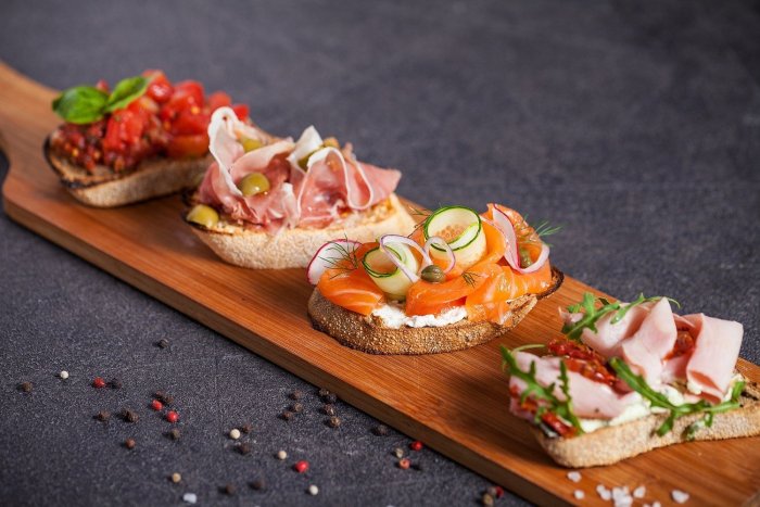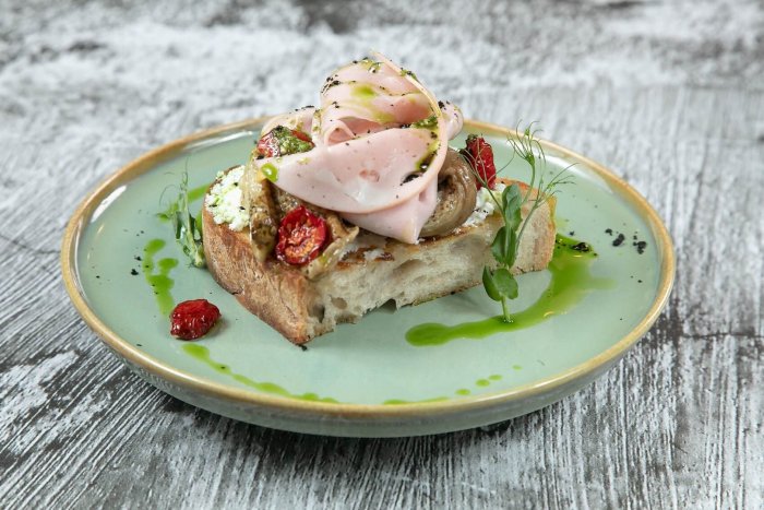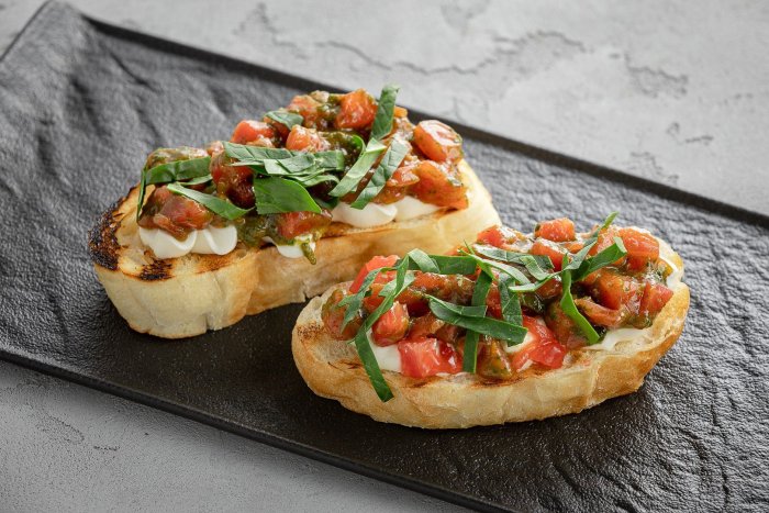 Брускетта с мортаделлой - это аппетитное блюдо, которое сочетает в себе простоту и изысканность идеально подходит для легкого перекуса или закуски к столу. Брускетты - это тостовые ломтики хлеба, обжаренные на гриле или в духовке, которые затем натирают чесноком и поливают оливковым маслом. На этих хрустящих кусочках располагается сочная мортаделла, итальянская колбаса из свиного мяса, специальным образом приготовленная и нарезанная на тонкие ломтики. Мортаделла отличается пикантным вкусом и нежной текстурой, что делает брускетту с мортаделлой неотразимой. В завершение, брускетту украшают свежими травами, томатами или оливками, чтобы добавить яркости и аромата этому изысканному блюду. Такая комбинация ингредиентов создает прекрасный контраст между хрустящими тостами, сочной мортаделлой и свежими нотками трав, придающими яркость и свежесть каждому кусочку. Брускетта с мортаделлой - это не только вкусно, но и просто приготовить, поэтому она станет отличным выбором для любого случая: будь то дружеские посиделки, семейный ужин или праздничное застолье. Она порадует гурманов и обязательно станет одним из ваших любимых блюд!