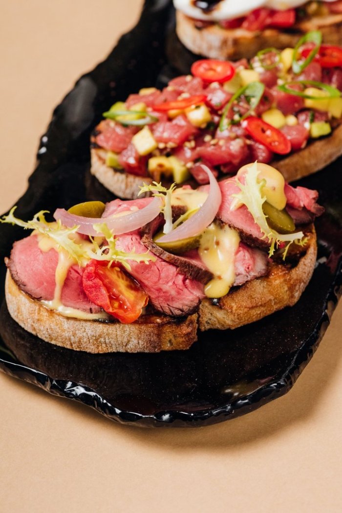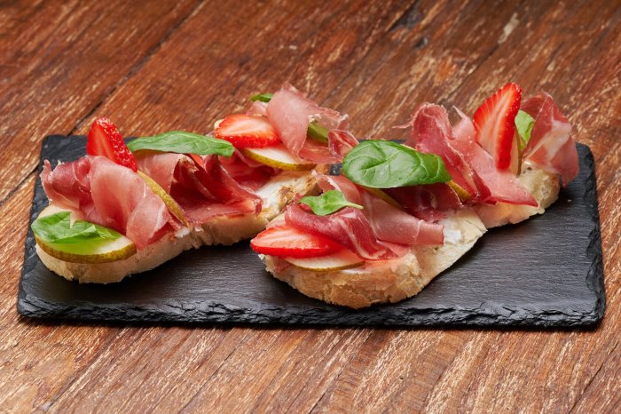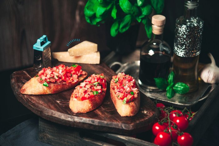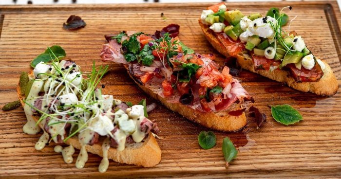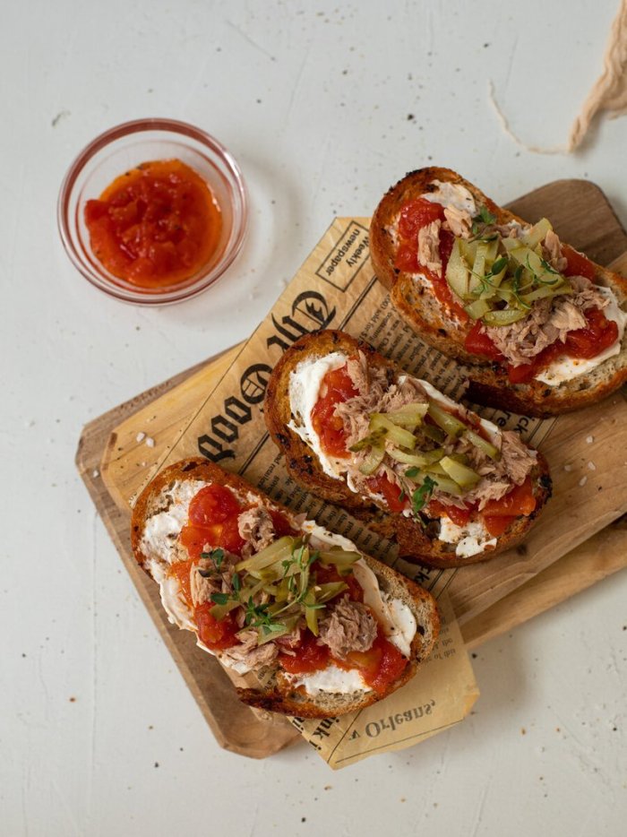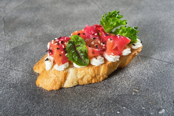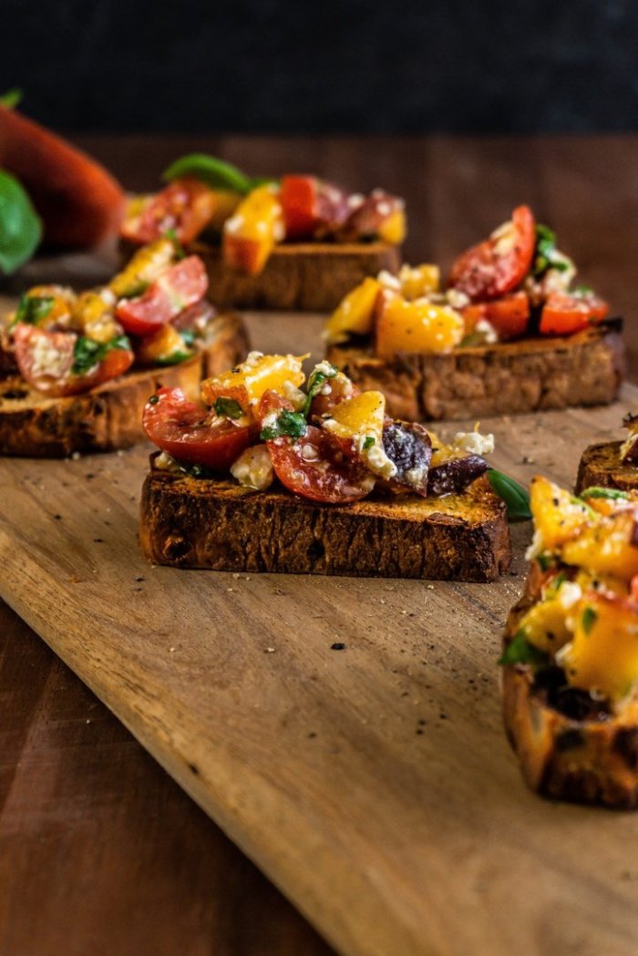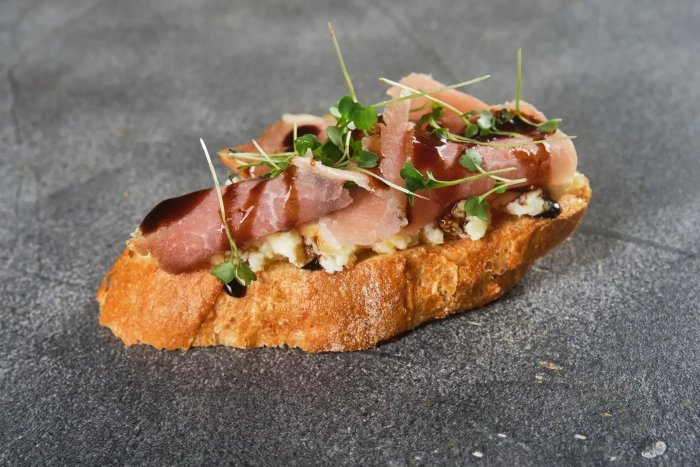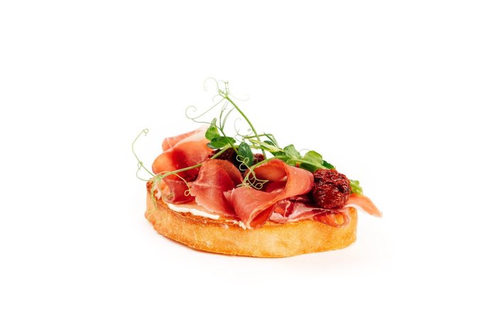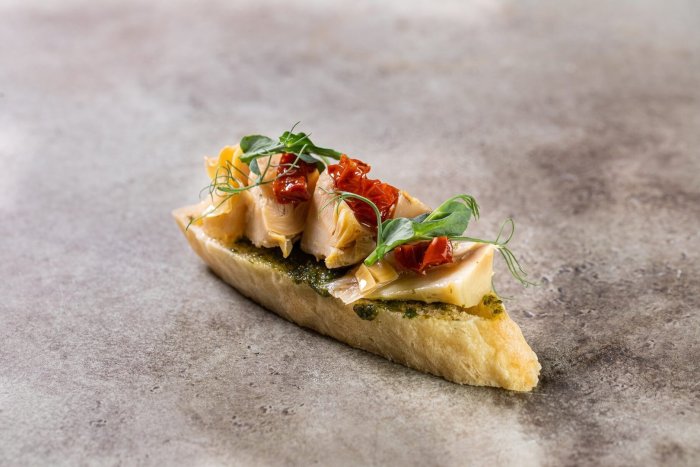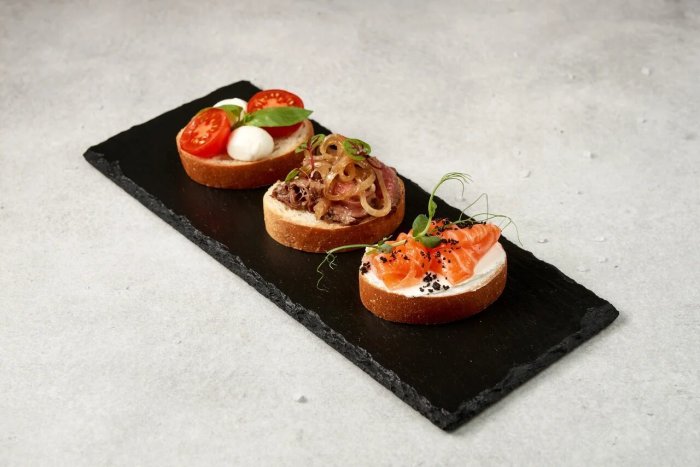 Брускетта с мортаделлой - это аппетитное блюдо, которое сочетает в себе простоту и изысканность идеально подходит для легкого перекуса или закуски к столу. Брускетты - это тостовые ломтики хлеба, обжаренные на гриле или в духовке, которые затем натирают чесноком и поливают оливковым маслом. На этих хрустящих кусочках располагается сочная мортаделла, итальянская колбаса из свиного мяса, специальным образом приготовленная и нарезанная на тонкие ломтики. Мортаделла отличается пикантным вкусом и нежной текстурой, что делает брускетту с мортаделлой неотразимой. В завершение, брускетту украшают свежими травами, томатами или оливками, чтобы добавить яркости и аромата этому изысканному блюду. Такая комбинация ингредиентов создает прекрасный контраст между хрустящими тостами, сочной мортаделлой и свежими нотками трав, придающими яркость и свежесть каждому кусочку. Брускетта с мортаделлой - это не только вкусно, но и просто приготовить, поэтому она станет отличным выбором для любого случая: будь то дружеские посиделки, семейный ужин или праздничное застолье. Она порадует гурманов и обязательно станет одним из ваших любимых блюд!