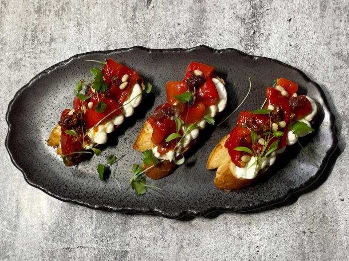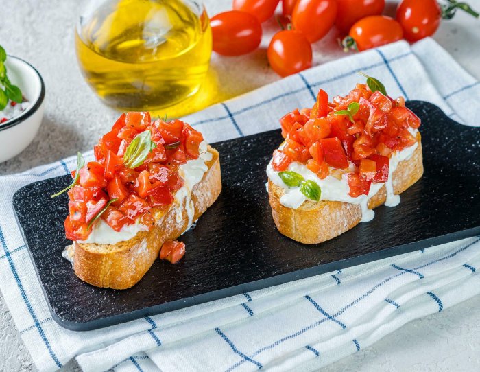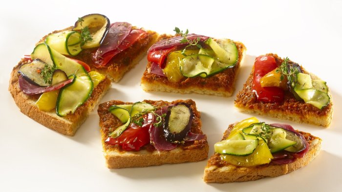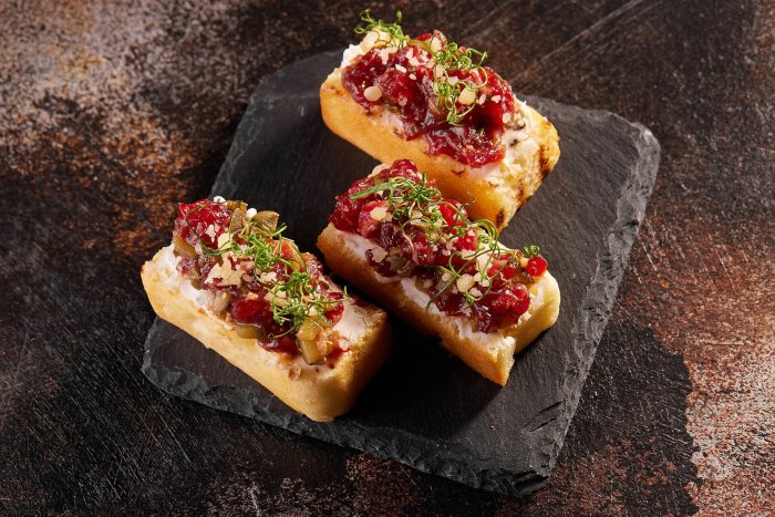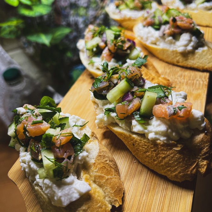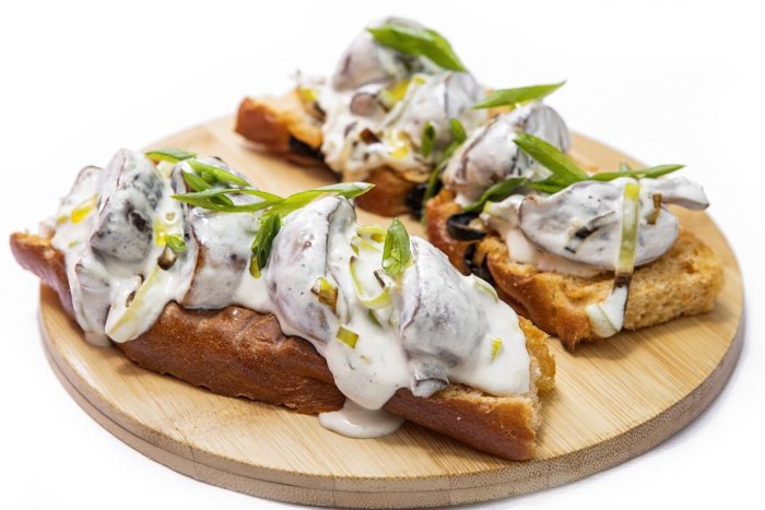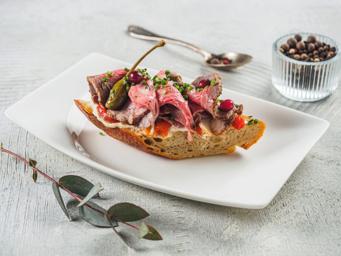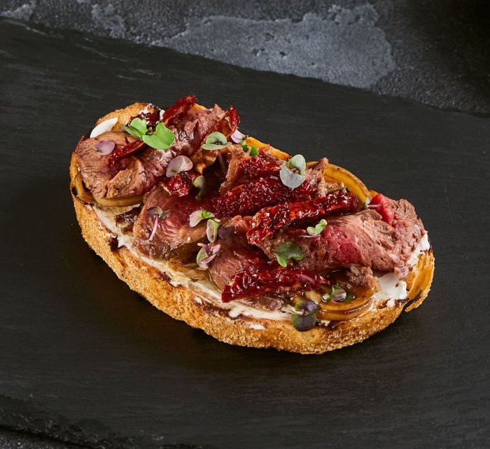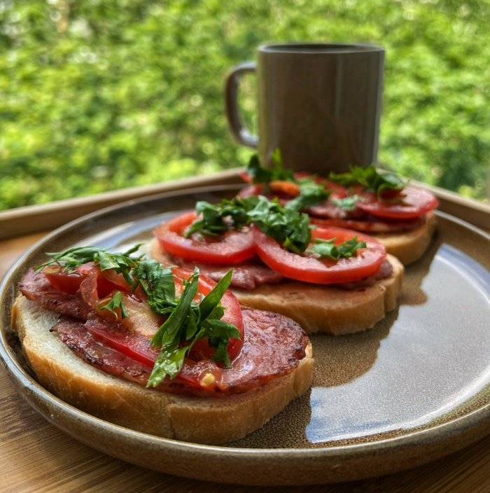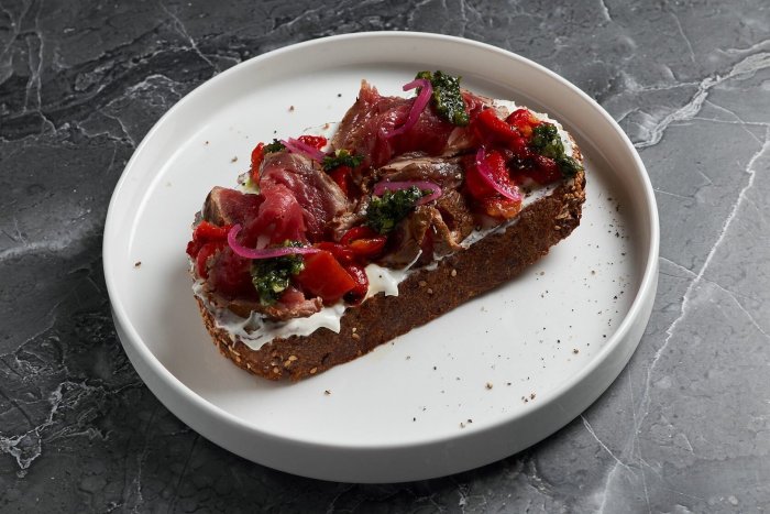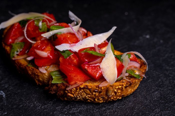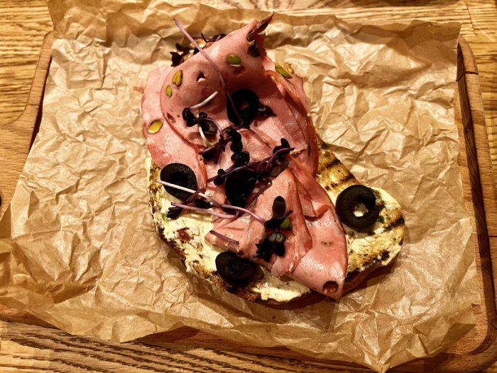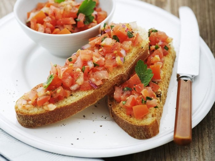 Брускетта с мортаделлой - это аппетитное блюдо, которое сочетает в себе простоту и изысканность идеально подходит для легкого перекуса или закуски к столу. Брускетты - это тостовые ломтики хлеба, обжаренные на гриле или в духовке, которые затем натирают чесноком и поливают оливковым маслом. На этих хрустящих кусочках располагается сочная мортаделла, итальянская колбаса из свиного мяса, специальным образом приготовленная и нарезанная на тонкие ломтики. Мортаделла отличается пикантным вкусом и нежной текстурой, что делает брускетту с мортаделлой неотразимой. В завершение, брускетту украшают свежими травами, томатами или оливками, чтобы добавить яркости и аромата этому изысканному блюду. Такая комбинация ингредиентов создает прекрасный контраст между хрустящими тостами, сочной мортаделлой и свежими нотками трав, придающими яркость и свежесть каждому кусочку. Брускетта с мортаделлой - это не только вкусно, но и просто приготовить, поэтому она станет отличным выбором для любого случая: будь то дружеские посиделки, семейный ужин или праздничное застолье. Она порадует гурманов и обязательно станет одним из ваших любимых блюд!